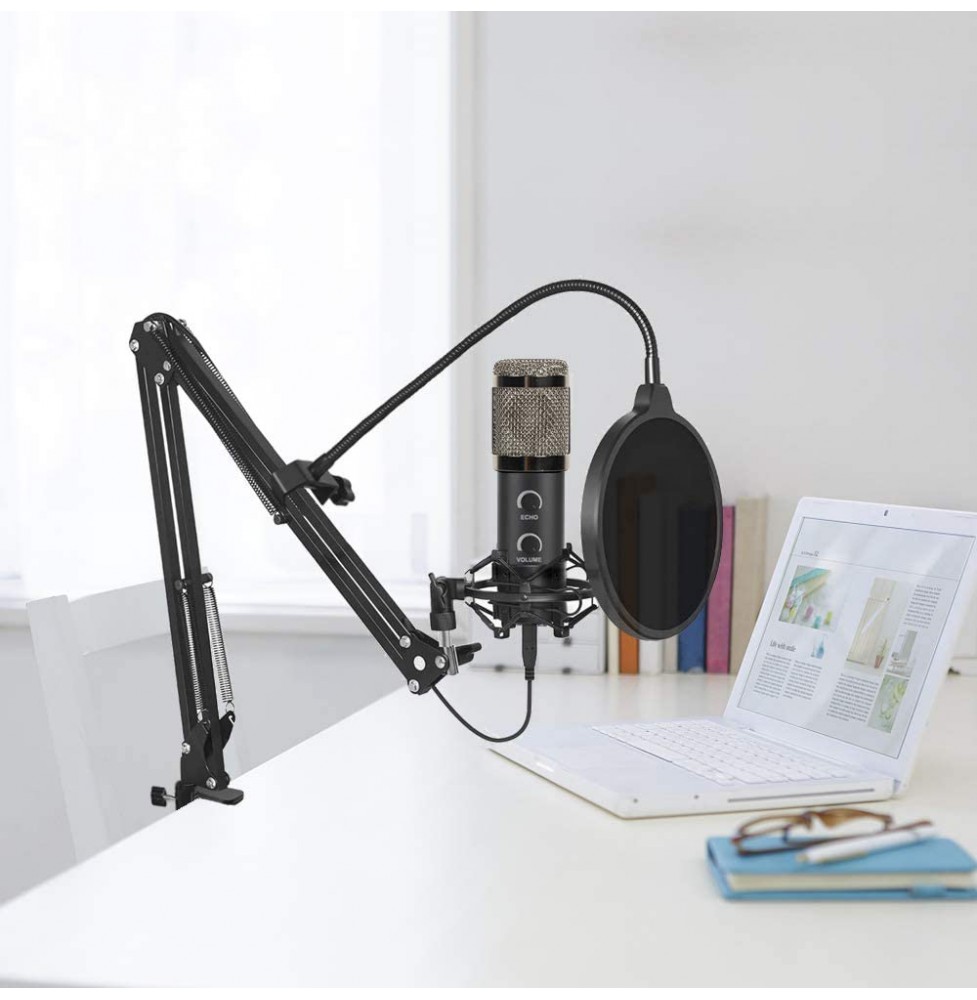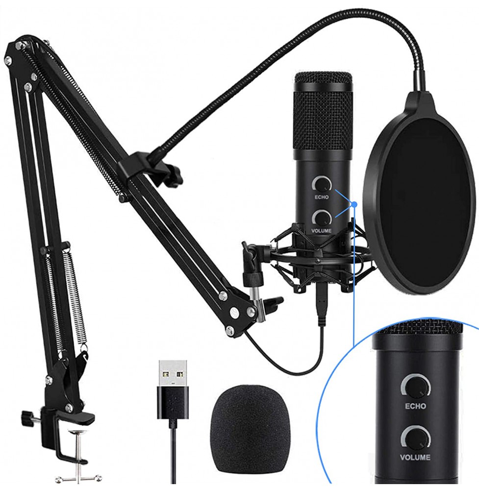 2021 Upgraded USB Condenser Microphone for Computer, Great for Gaming, Podcast, LiveStreaming, YouTube Recording, Karaoke on PC, Plug & Play, with Adjustable Metal Arm Stand, Ideal for Gift, Black