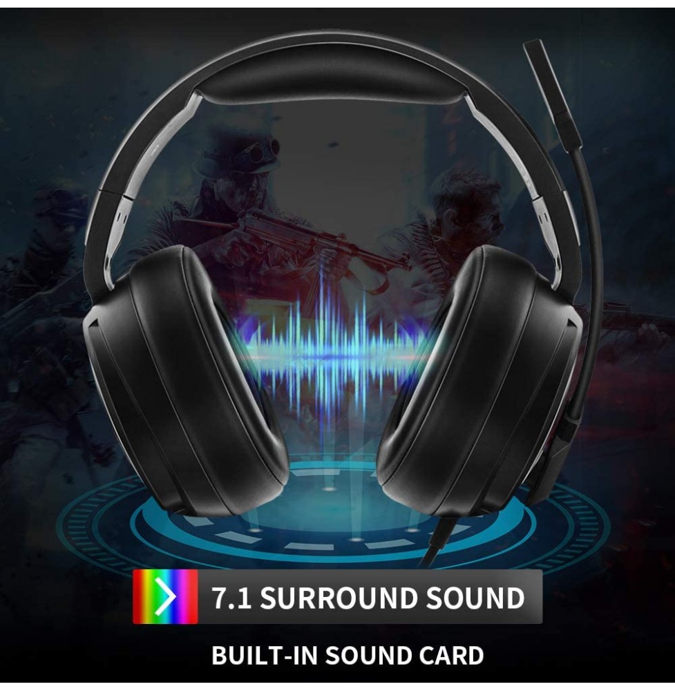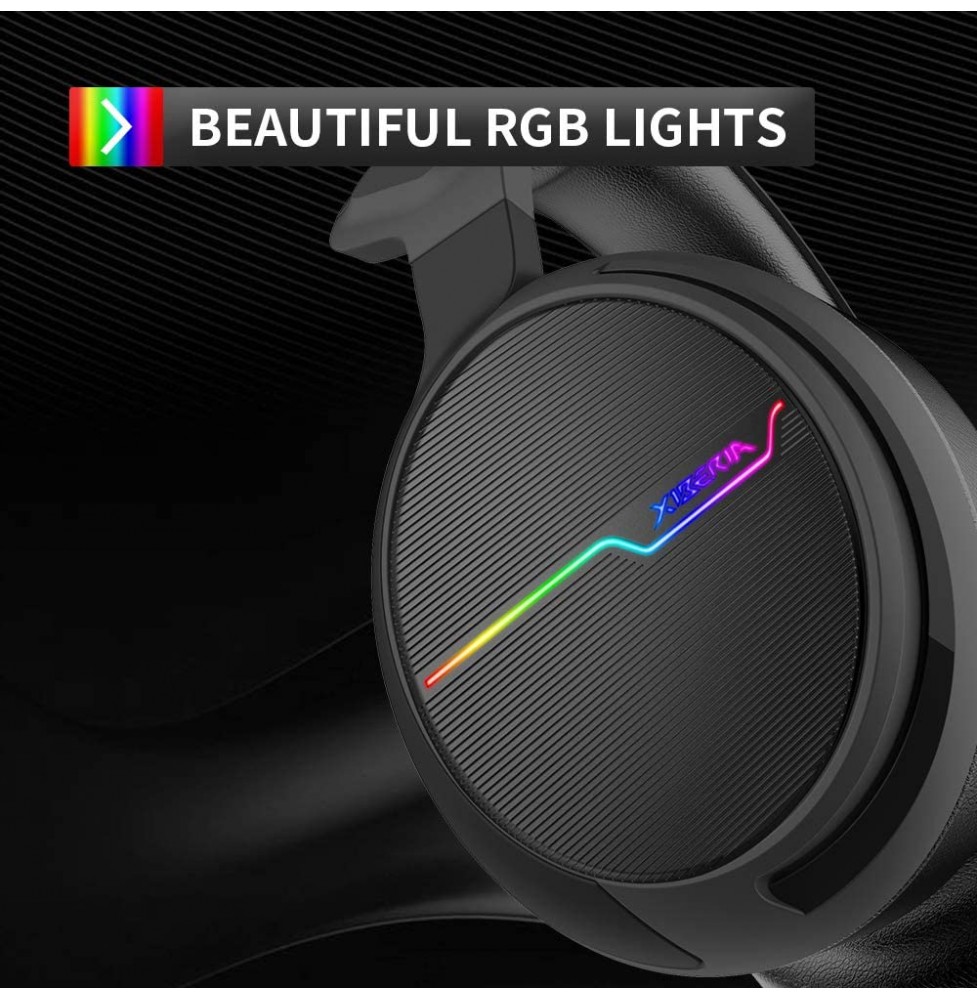 Jeecoo Xiberia USB Pro Gaming Headset for PC- 7.1 Surround Sound Headphones with Noise Cancelling Microphone- Memory Foam Ear Pads RGB Lights for Laptops