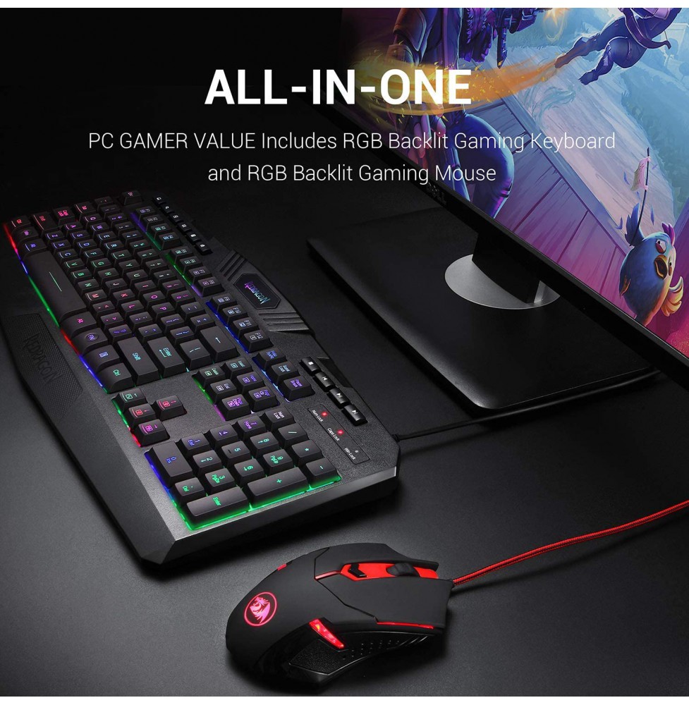 Redragon S101 Wired Gaming Keyboard and Mouse Combo RGB Backlit Gaming Keyboard with Multimedia Keys Wrist Rest and Red Backlit Gaming Mouse 3200 DPI for Windows PC Gamers (Black)